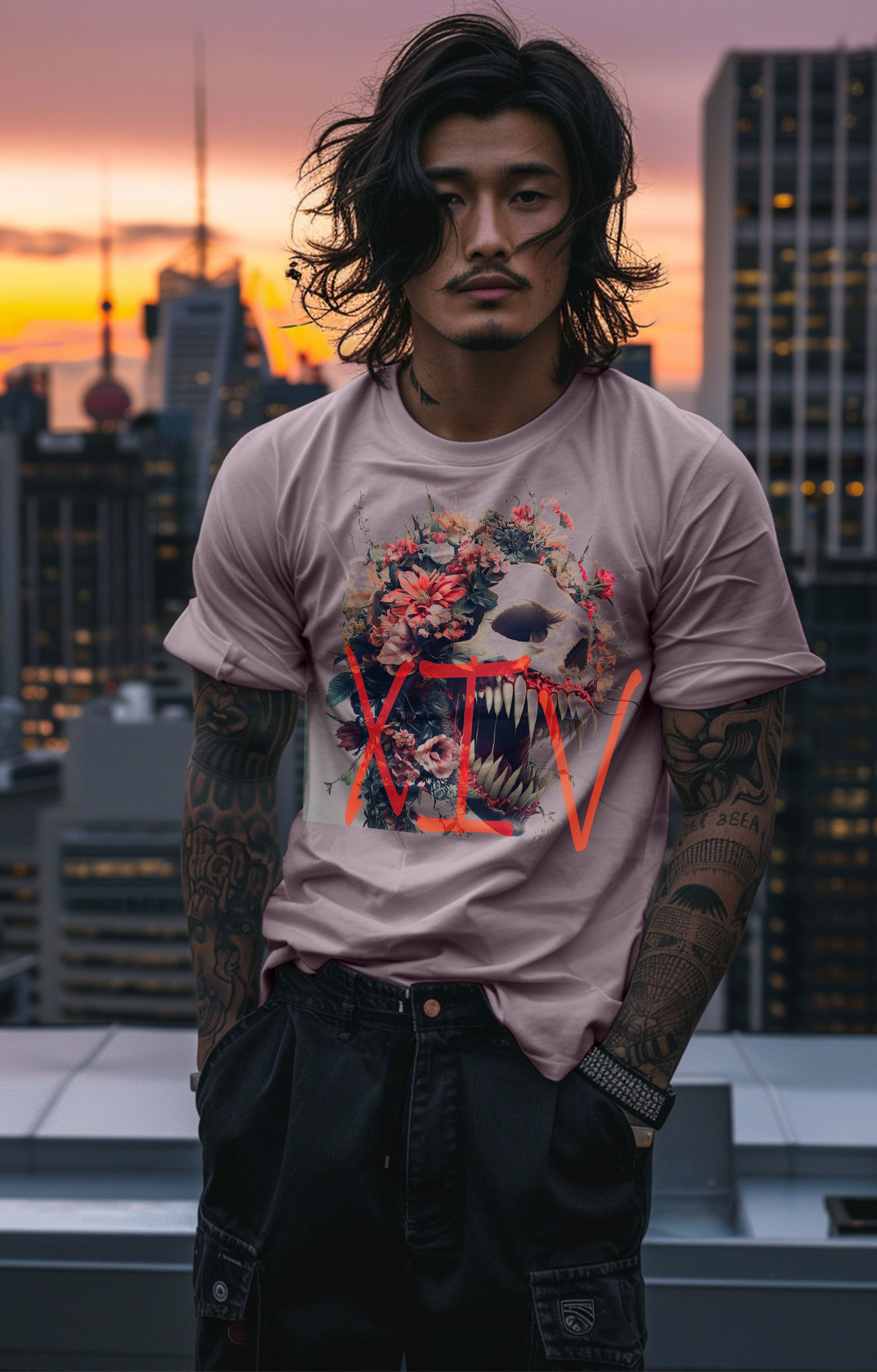 Explore the dual nature of beauty and the beast with Carbon XIV's Floral Skull Beast, a stunning artwork that marries flora with ferocity.
