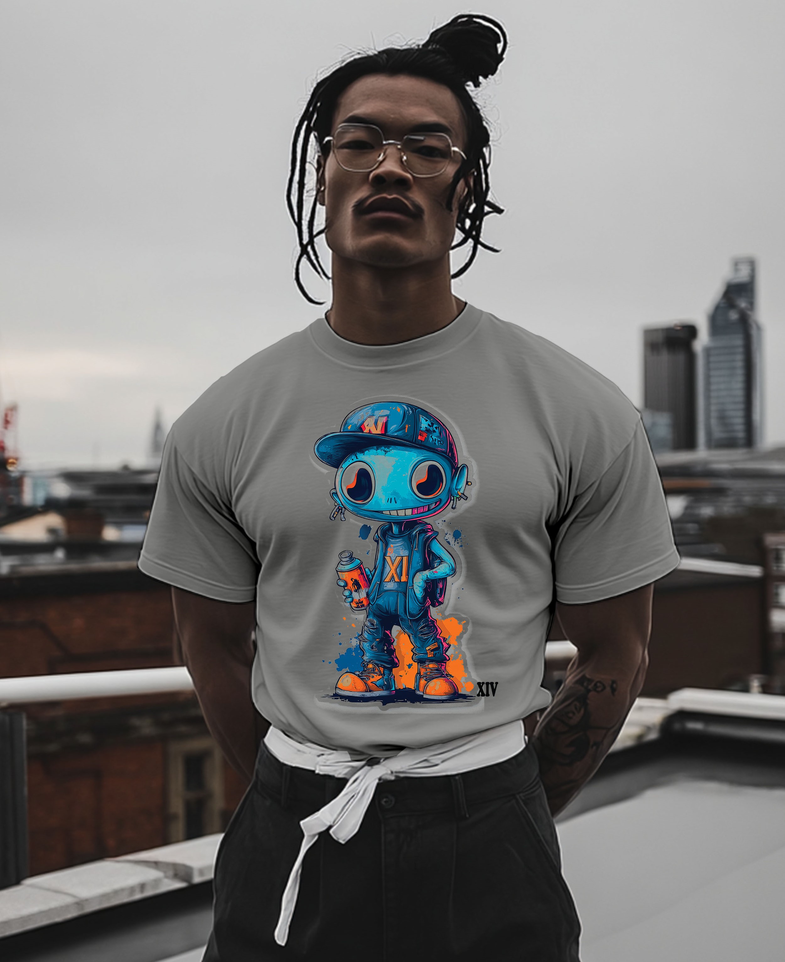 Graffiti Robot Art T-Shirt – Edgy Urban Streetwear Design