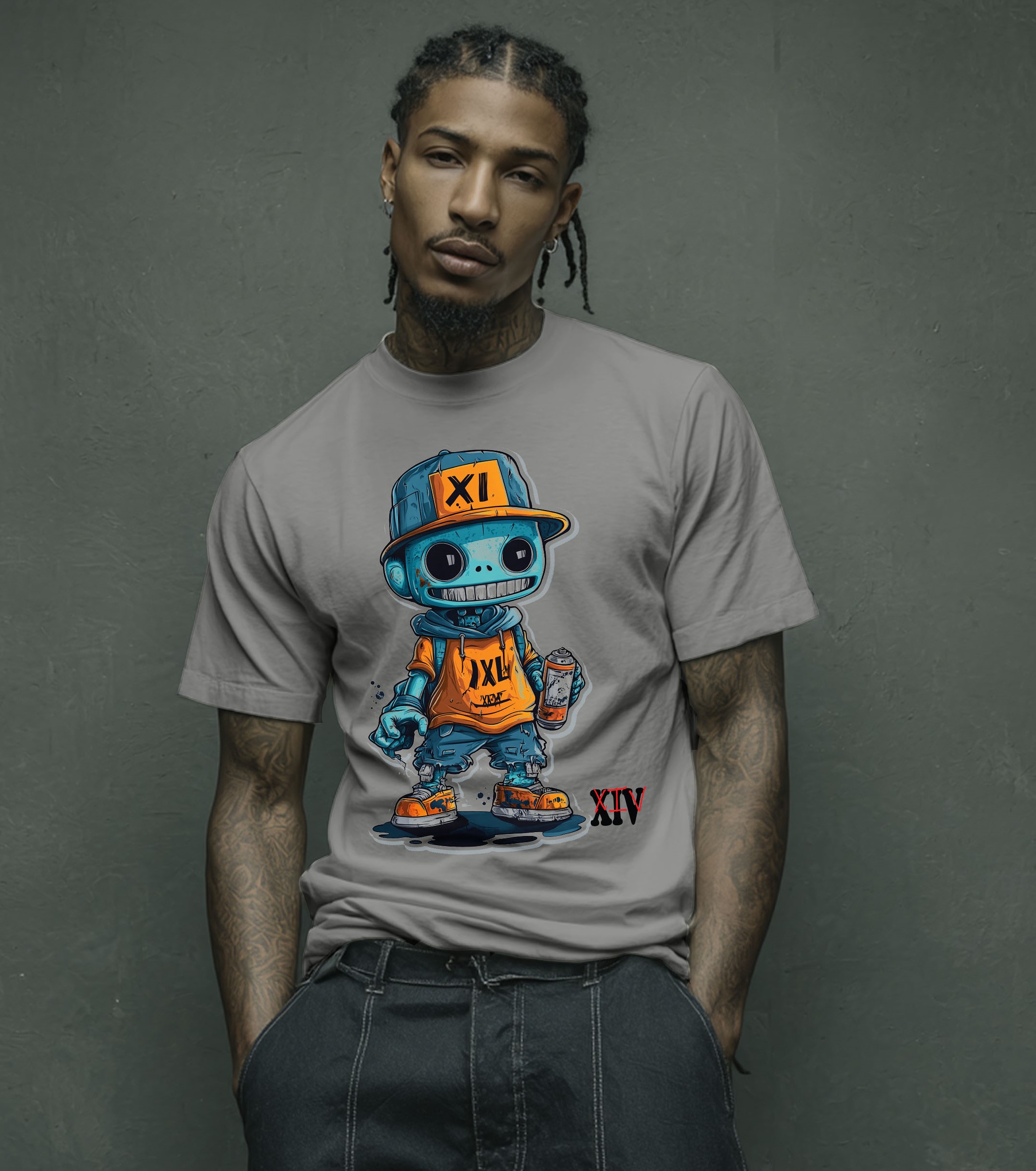 Embrace urban culture with this graffiti-inspired robot character T-shirt. Vibrant design, edgy vibes, and perfect for bold streetwear enthusiasts.